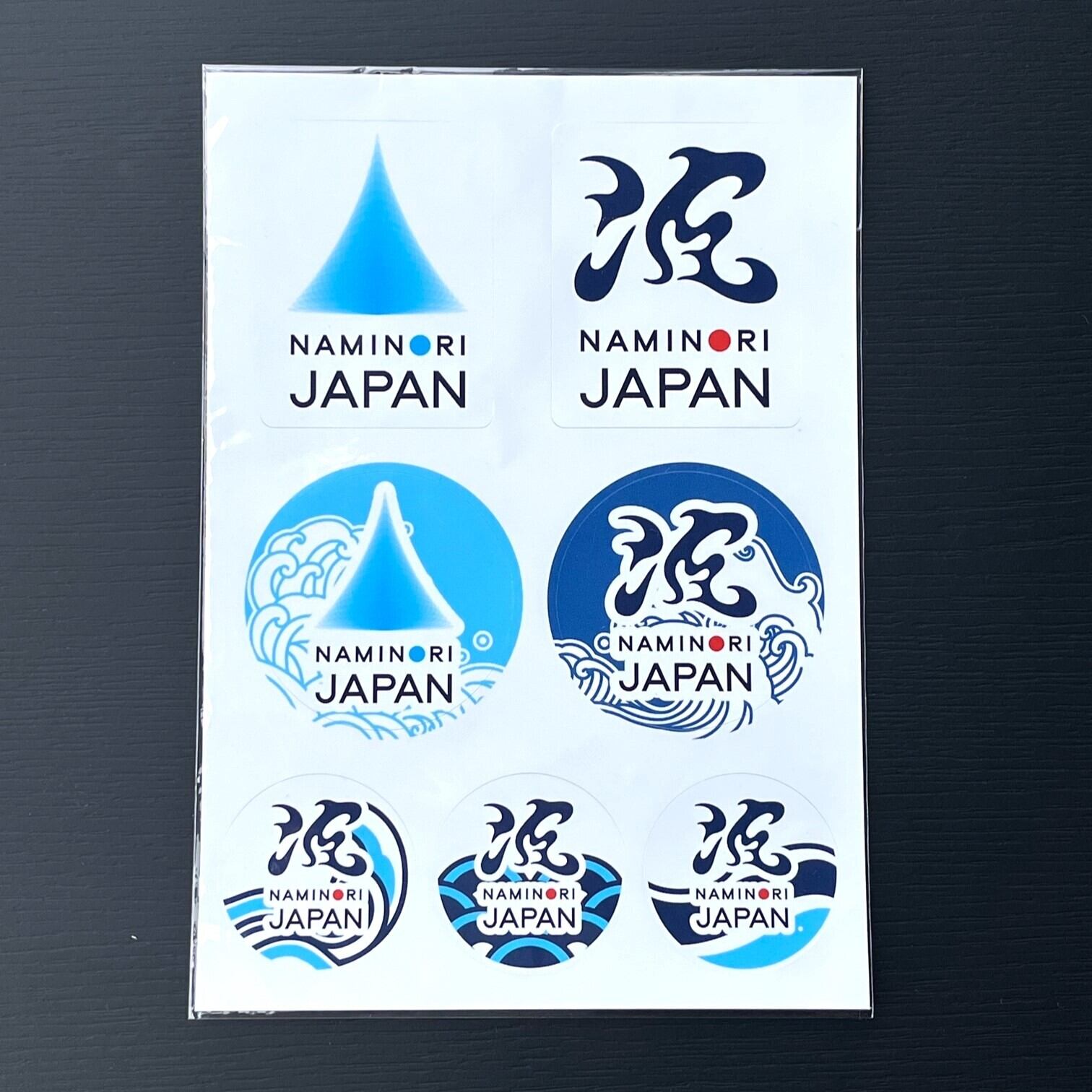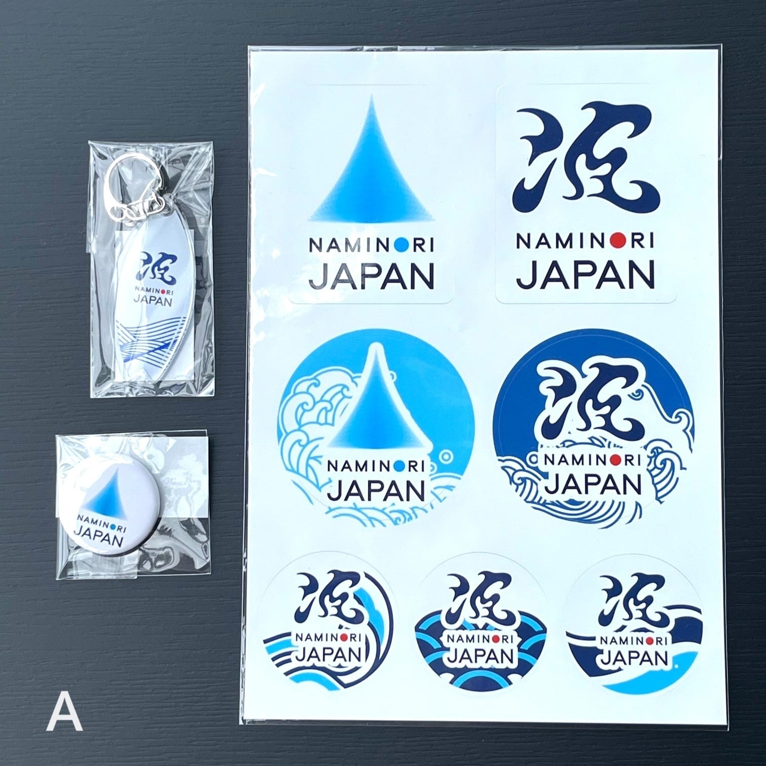 Aセット…NAMINORI JAPANロゴ缶バッチ+「波」アクリルキーホルダー+ステッカー